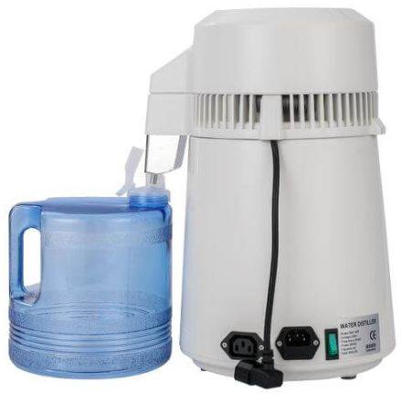 Automatický destilátor vody. Výroba 1,0 L/hod. Objem zásobníka 4 L. Nerezová tryska. Automotické vypnutie na konci cyklu.