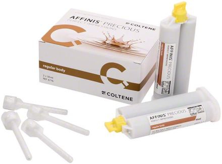 Skvelý A-silikónová korekčná odtlačková hmota v zlatej farbe pre dokonalú čitateľnosť odtlačku. Balenie: 2 x 50 ml, 12 x miešacie koncovky.