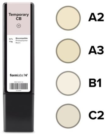 Živica vo farbe zubov na tlač dočasných koruniek, mostíkov, inlejí, onlejí a faziet. Vhodná na produkciu až 7-dielnych mostíkov. Cementácia bežným provizórnym cementom. Môžu zostať v ústach až 12 mesiacov. Pre najlepšiu estetiku vhodné použiť celonerezovú platformu. Vyžaduje sa následné vytvrdenie. Rozlíšenie: 50 mikrónov.