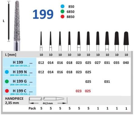 Diamantové vrtáky – kónus zaoblený. Zrnitosť extra hrubá. Pracovná dĺžka 10 mm.