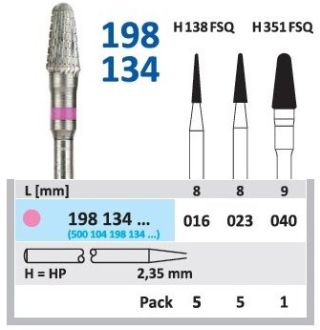 Tvrdokovová fréza – kónus zaoblený s priemerom 1,6 mm. Pracovná dĺžka 8 mm.