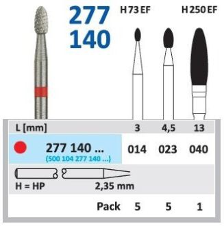 Tvrdokovová fréza – vajíčko s priemerom 2,3 mm. Pracovná dĺžka 4,5 mm.