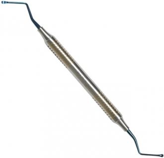 Chirurgická kyreta na extrakciu debrisu z extrakčnej rany. Pracovné časti potiahnuté titánovou vrstvou pre zvýšenú pevnosť.