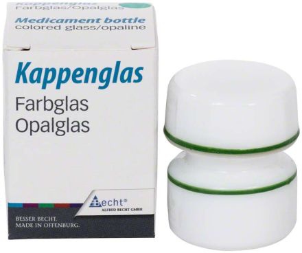 Baňka s viečkom z opálového skla (liekovka) na prehľadné, úsporné a hygienické dávkovanie tekutých liečiv. Farebne kódované. Autoklávovateľné.