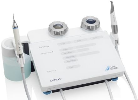 Nový externý kombinovaný prístroj na pieskovanie s ultrazvukom. Dotykový hygienický panel. Flexibilné pripojenie na vodu (vodovodný rad alebo aj zásobník vody. Vymeniteľné trysky: supra a perio – otočné o 360 stupňov. Ergonomické koncovky chránia zápästie a karpálne nervy. 2 zásobníky na piesok – prepínanie stlačeným jedného tlačidla. Rozpustné piesky – ochrana pred upchatím.