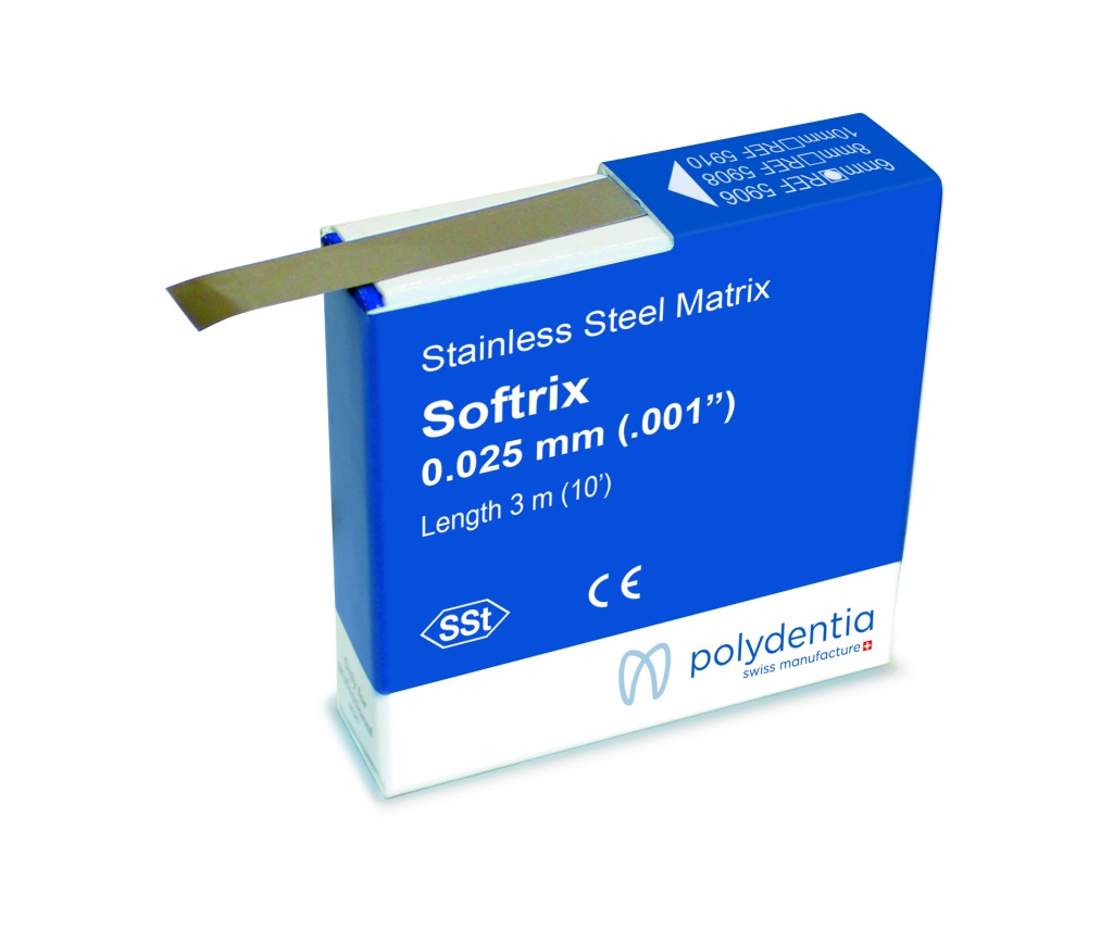 Jemná nerezová páska s hrúbkou len 0,025 mm, vhodná pre úzke interdentálne miesta. Dĺžka 3 m.