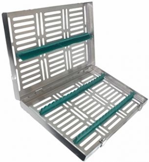 Nerezová kazeta s miestom na 20 dentálnych nástrojov s odoberateľným vekom.