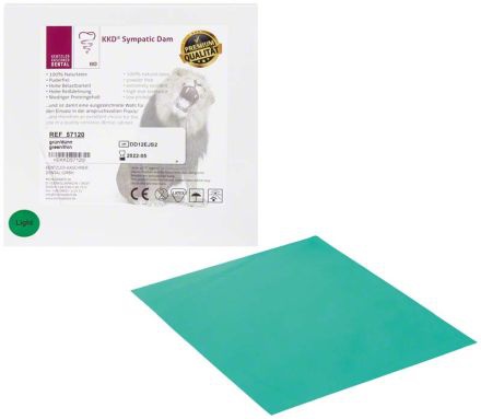 Koferdam zo 100% prírodného latexu. Bez púdru. Vysoká odolnosť, nízke proteíny, vysoká roztiažnosť. Rozmery: 15 cm x 15 cm.