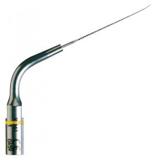 Koncovka k prístroju Satelec na irigáciu koreňového kanálika. Priemer 2,5 mm, dĺžka 21 mm.
