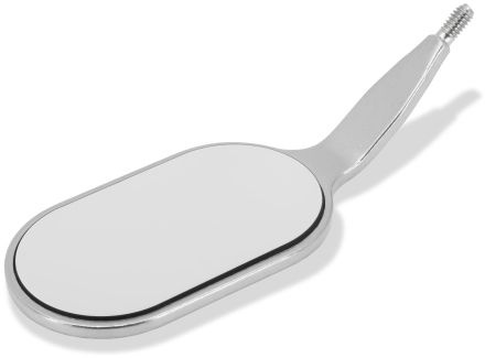 Vysokokvalitné zrkadielko s predným zrkadlením s rhódiový povrchom. Široká rukoväť pre perfektnú retrakciu líca.