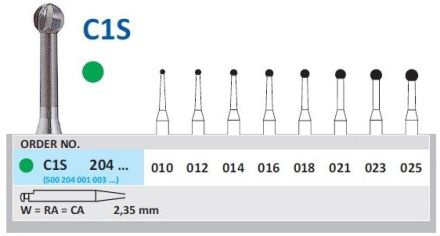 HORICO tvrdokovová fréza čierna – kónus zaoblený 2,3 mm