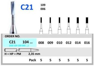 HORICO tvrdokovová fréza čierna – valček zaoblený 2,0 mm
